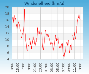 | Maximale windsnelheid | 20.9 km/u om 00:59 u |