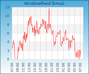 | Maximale windsnelheid | 13.0 km/u om 01:46 u |