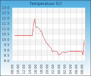 | Maximum temp. | 12.1 °C om 15:38 u |