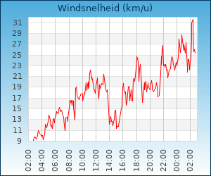 | Maximale windsnelheid | 48.3 km/u om 00:08 u |