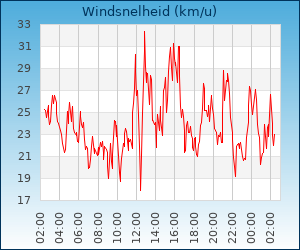 | Windsnelheid en -richting | 23.9 km/u uit ZZW |