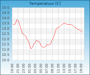 | Maximum temp. | 13.5 °C om 12:42 u |