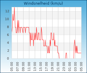 | Maximale windsnelheid | 13.0 km/u om 02:43 u |