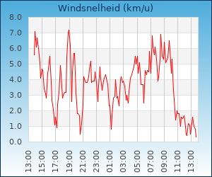 | Maximale windsnelheid | 20.5 km/u om 08:56 u |