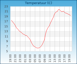 | Maximum temp. | 22.3 °C om 14:42 u |