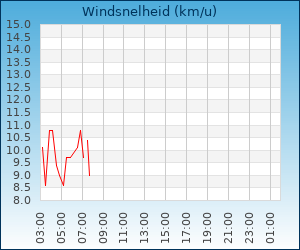 | Windsnelheid en -richting | 14.4 km/u uit N |