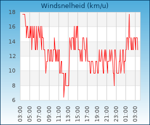 | Maximale windsnelheid | 41.8 km/u om 01:08 u |