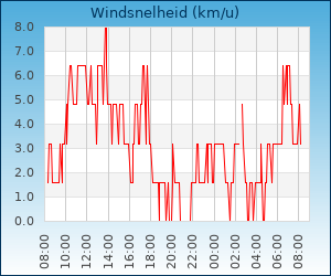 | Windsnelheid en -richting | 3.2 km/u uit ZW |