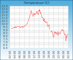 | Maximum temp. | 12.5 °C om 14:18 u |