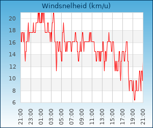 | Maximale windsnelheid | 30.6 km/u om 00:18 u |