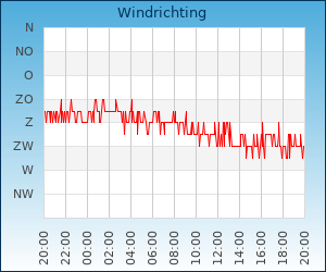 | Windsnelheid en -richting | 19.3 km/u uit ZW |