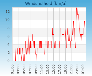 | Maximale windsnelheid | 14.5 km/u om 19:34 u |