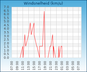 | Maximale windsnelheid | 4.8 km/u om 04:57 u |